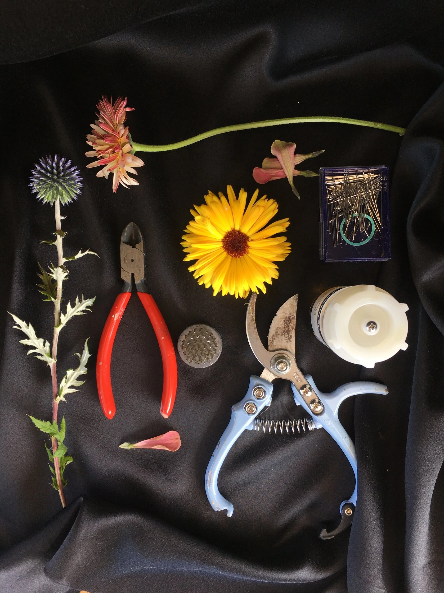A variety of seasonal flowers, dried specimens as well as tools are all supplied.